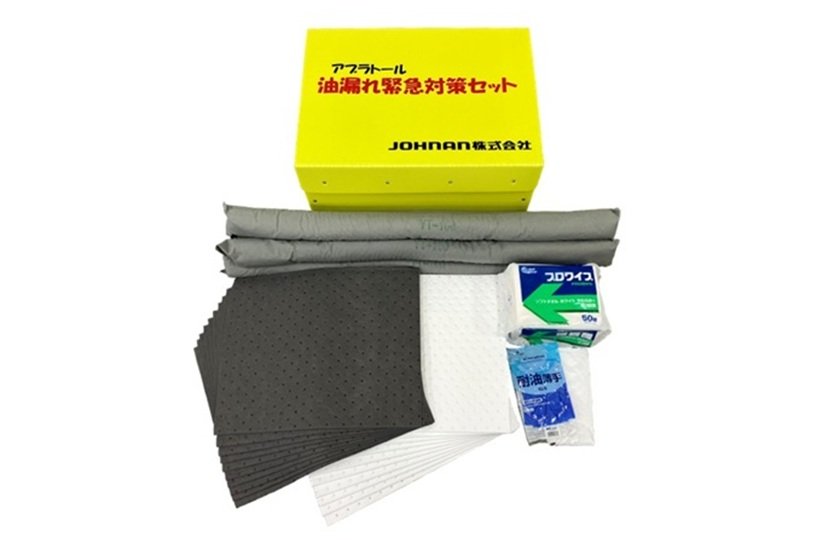 02油も水も吸収可能。また油だけ吸収する油専用吸収材もあります。